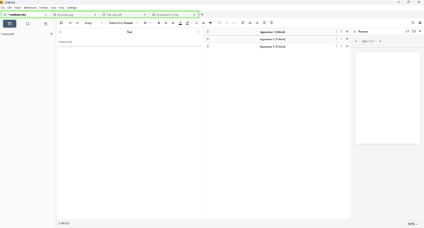 Criterion provides a flexible tab-based system for working on multiple files simultaneously.