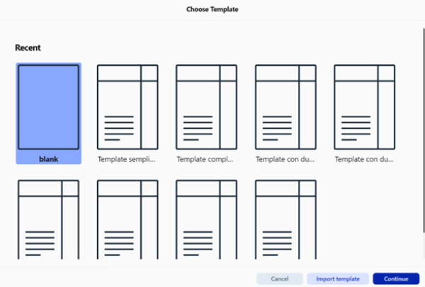 - Recent Templates: A list of templates recently used or created