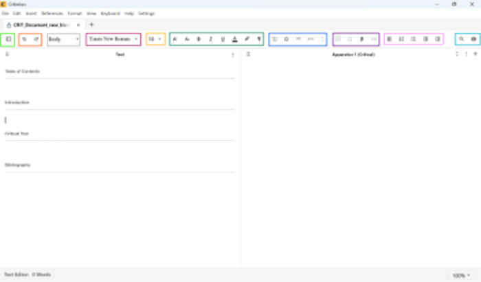 - Only editable content areas affected: Main text box, Apparatus box
