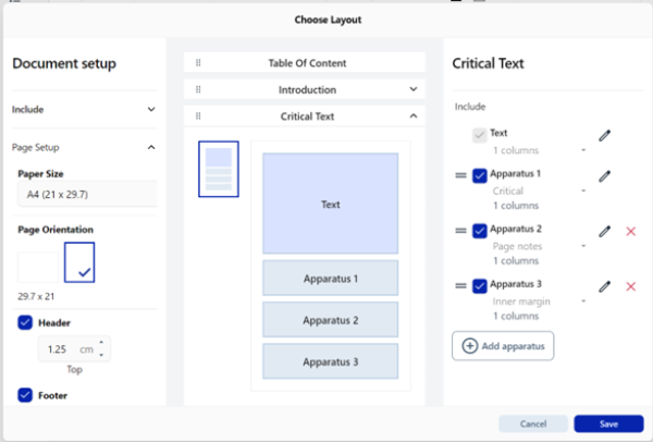 | Sections to include | Table of Contents, Introduction, Critical Text (mandatory), Bibliography | All except ToC optional |